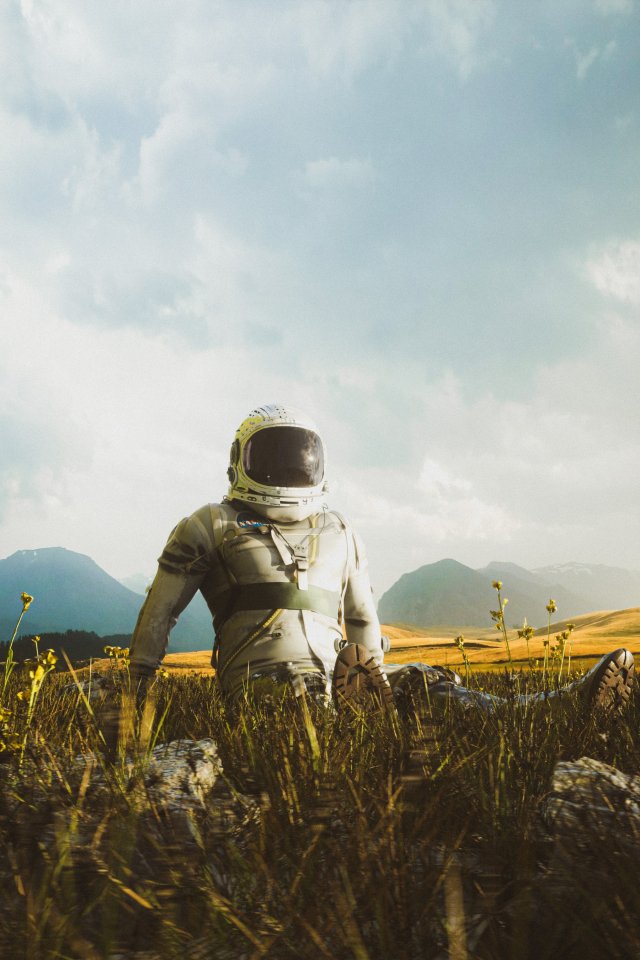 Обои: космонавт, поле - 640x960