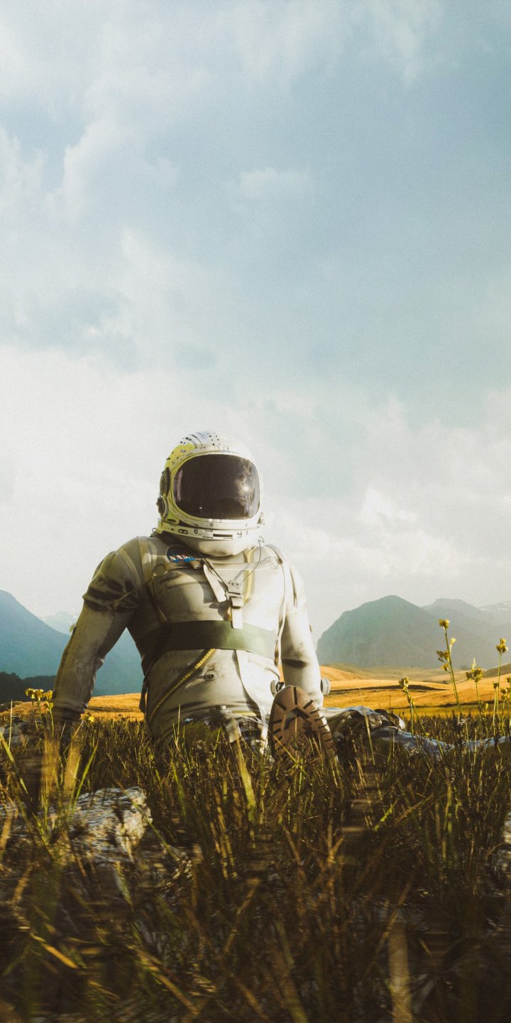 Обои: космонавт, поле - 720x1440