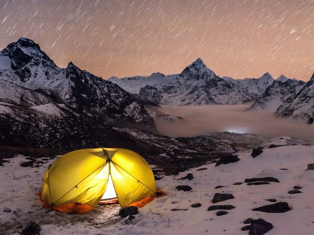 Обои: палатка, горная местность - 1024x768
