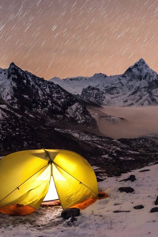 Обои: палатка, горная местность - 640x960
