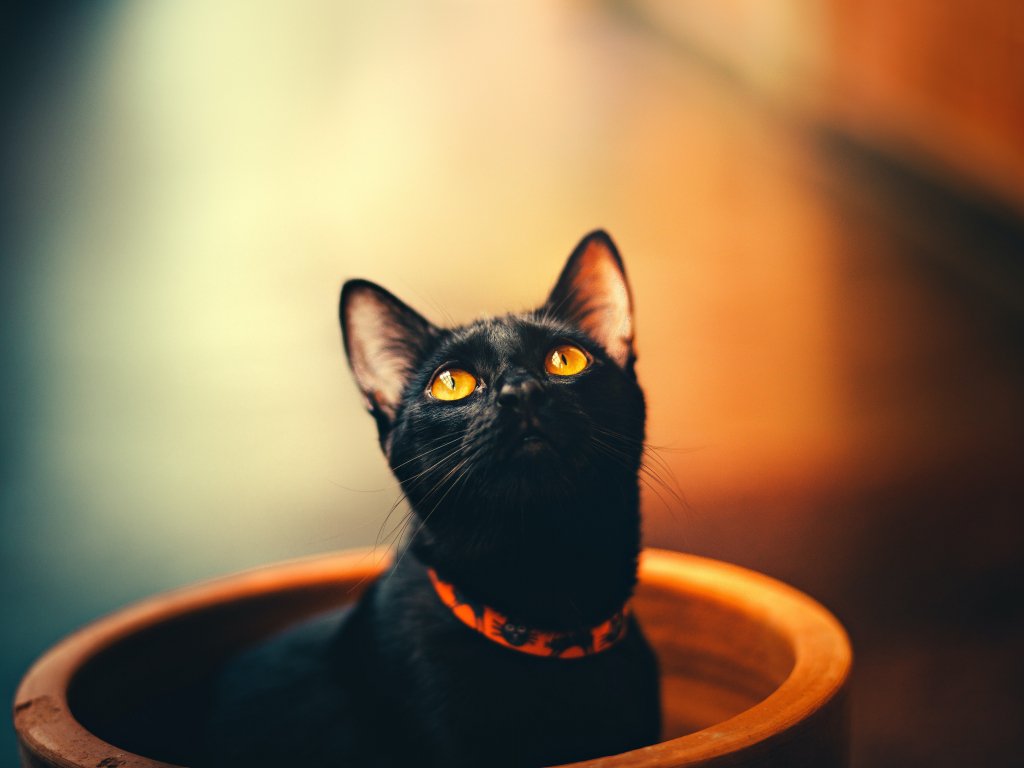 Обои: черный кот, обои для пк, взгляд - 1024x768