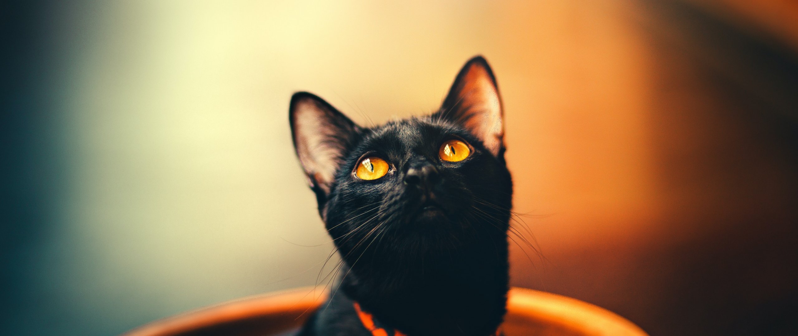 Обои: черный кот, обои для пк, взгляд - 2560x1080