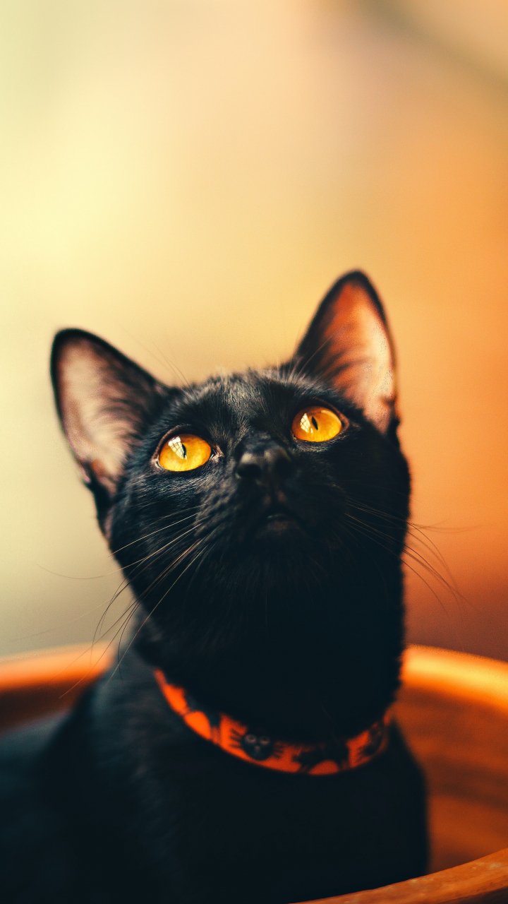 Обои: черный кот, обои для пк, взгляд - 720x1280