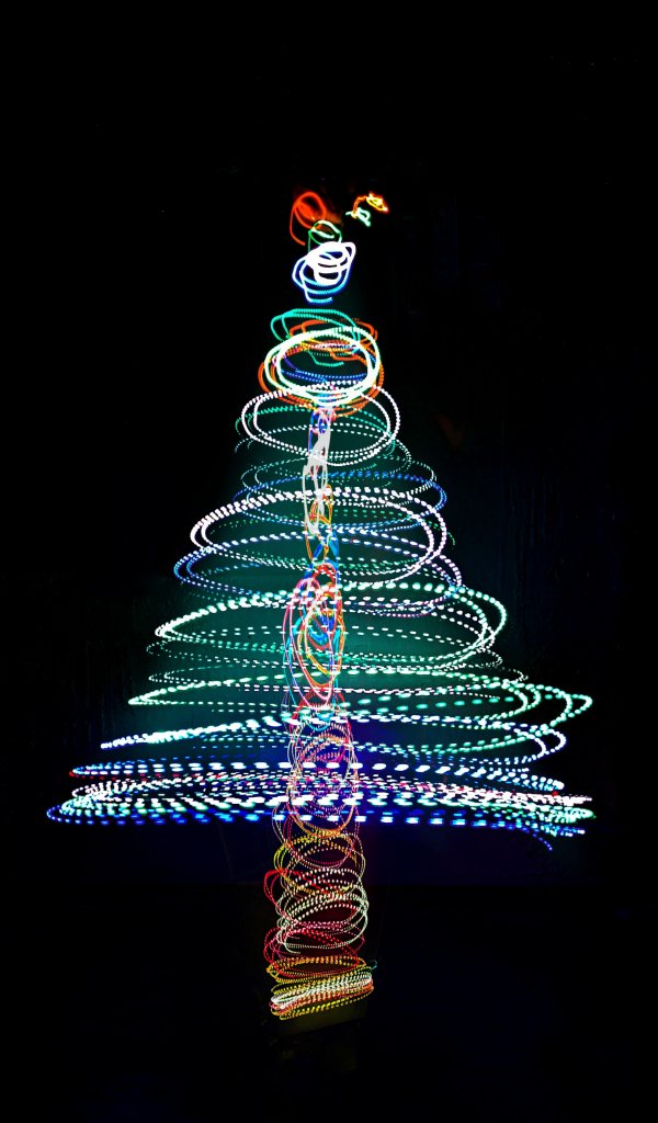 Обои: Новогодняя ёлка, длинная выдержка, фото - 600x1024