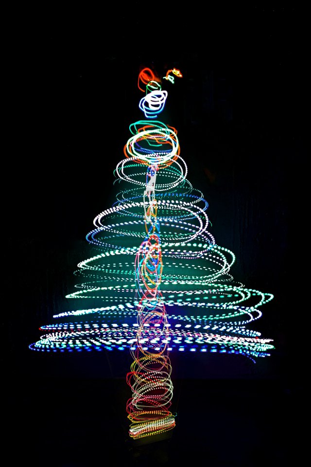 Обои: Новогодняя ёлка, длинная выдержка, фото - 640x960