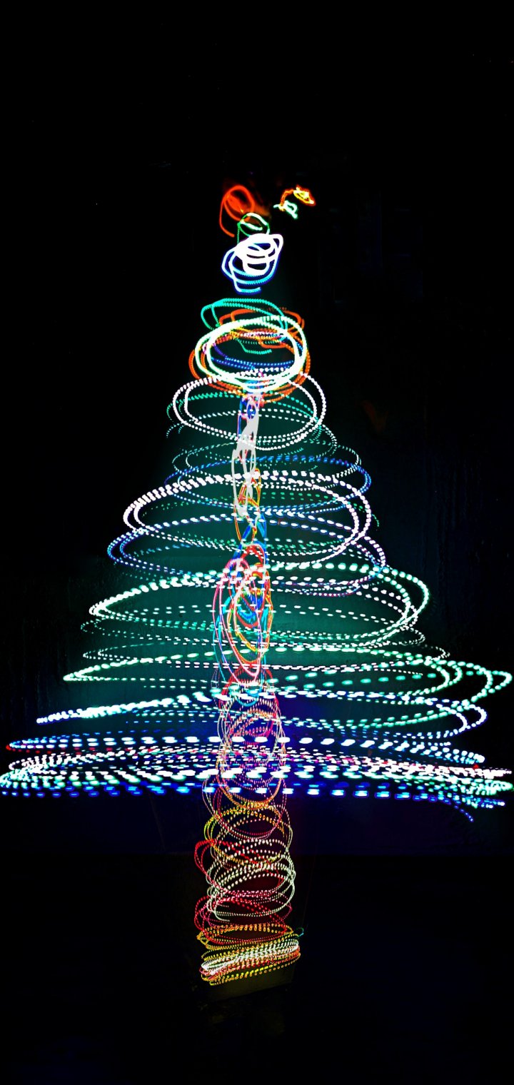 Обои: Новогодняя ёлка, длинная выдержка, фото - 720x1520