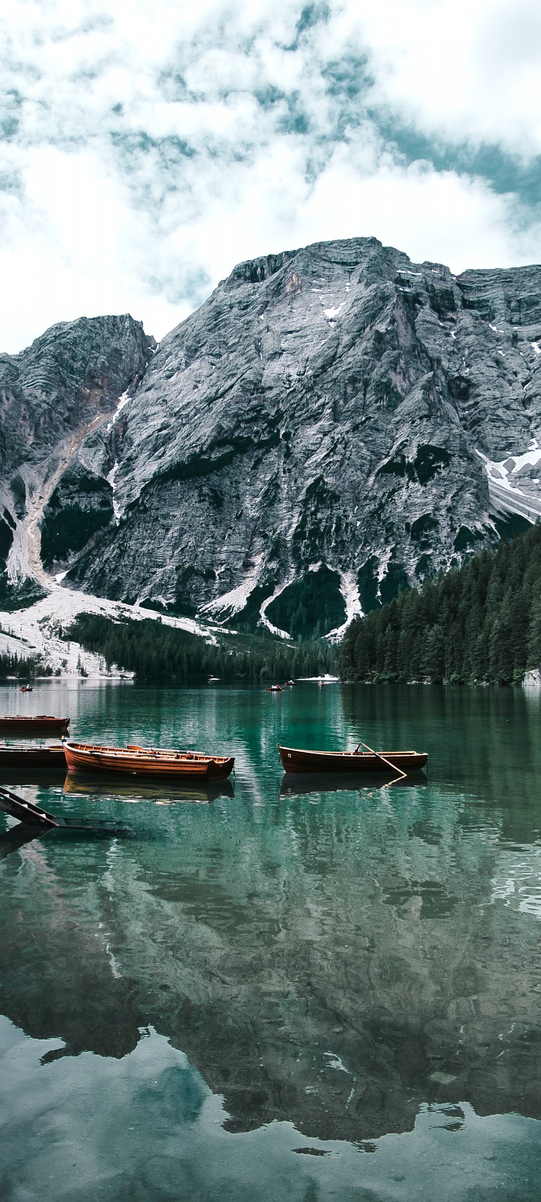 Обои: Озеро, лодки, горный пейзаж - 1080x2400