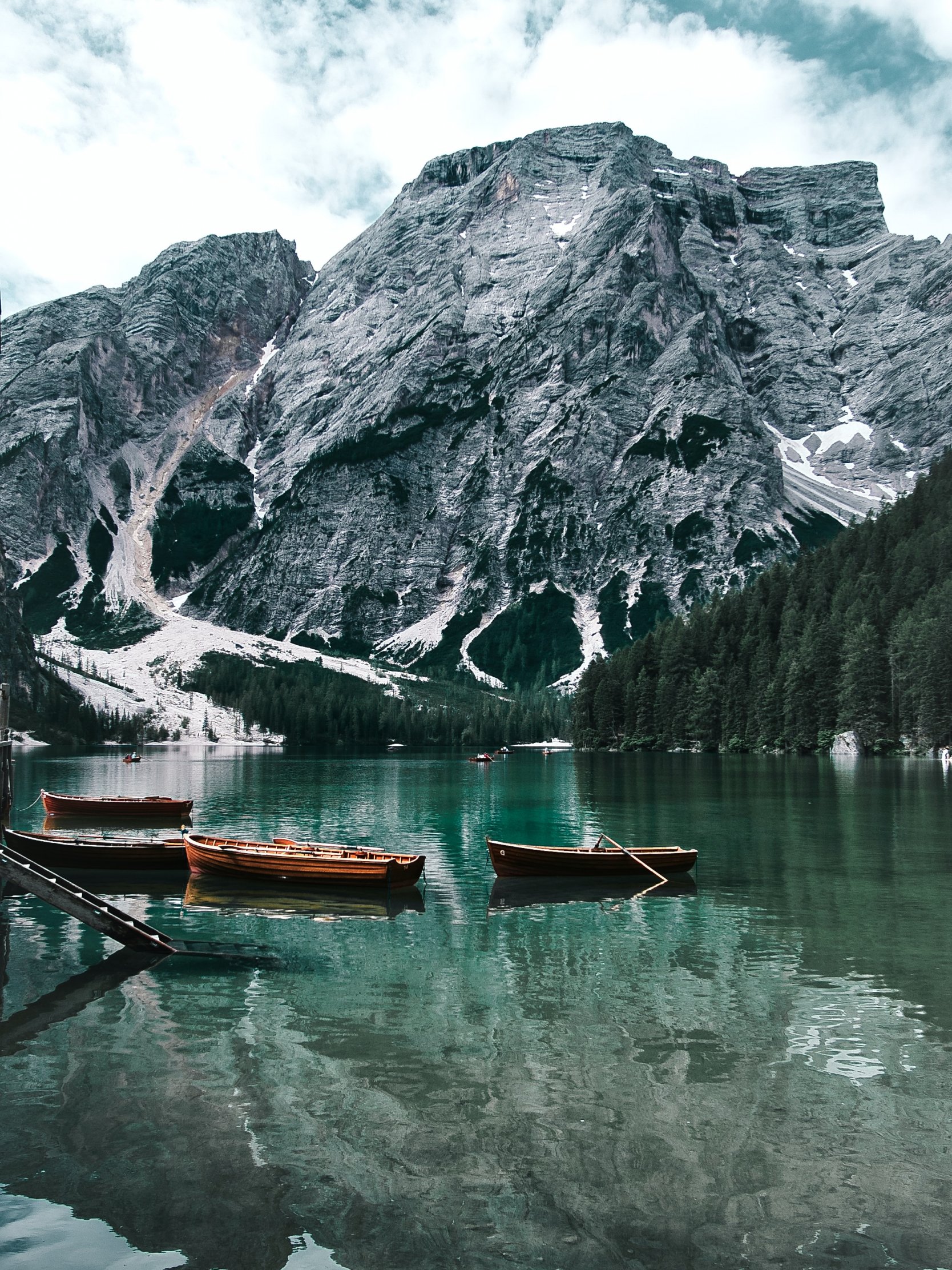 Обои: Озеро, лодки, горный пейзаж - 1668x2224