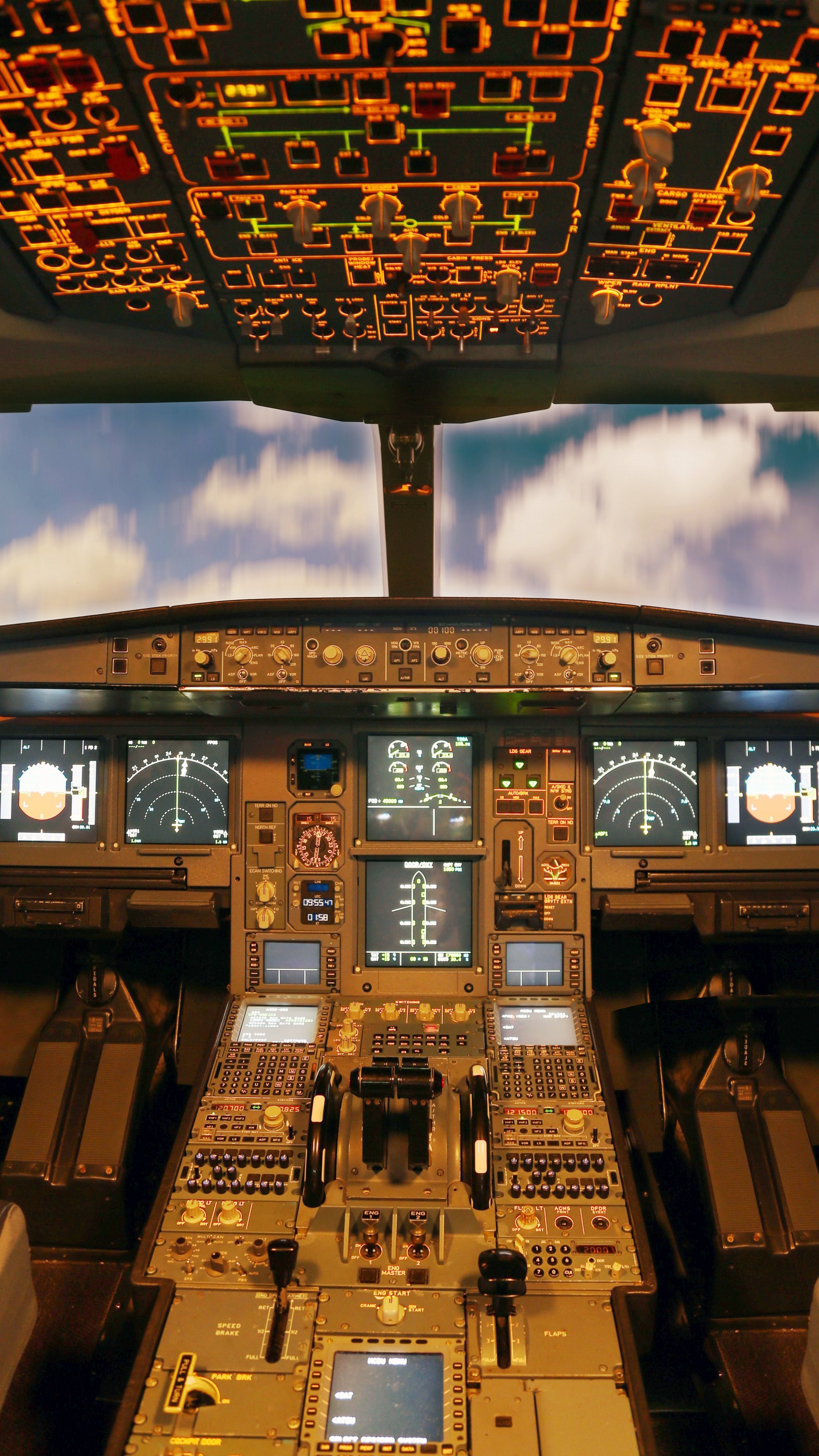 Обои: кабина самолета, самолет, приборная панель - 2160x3840