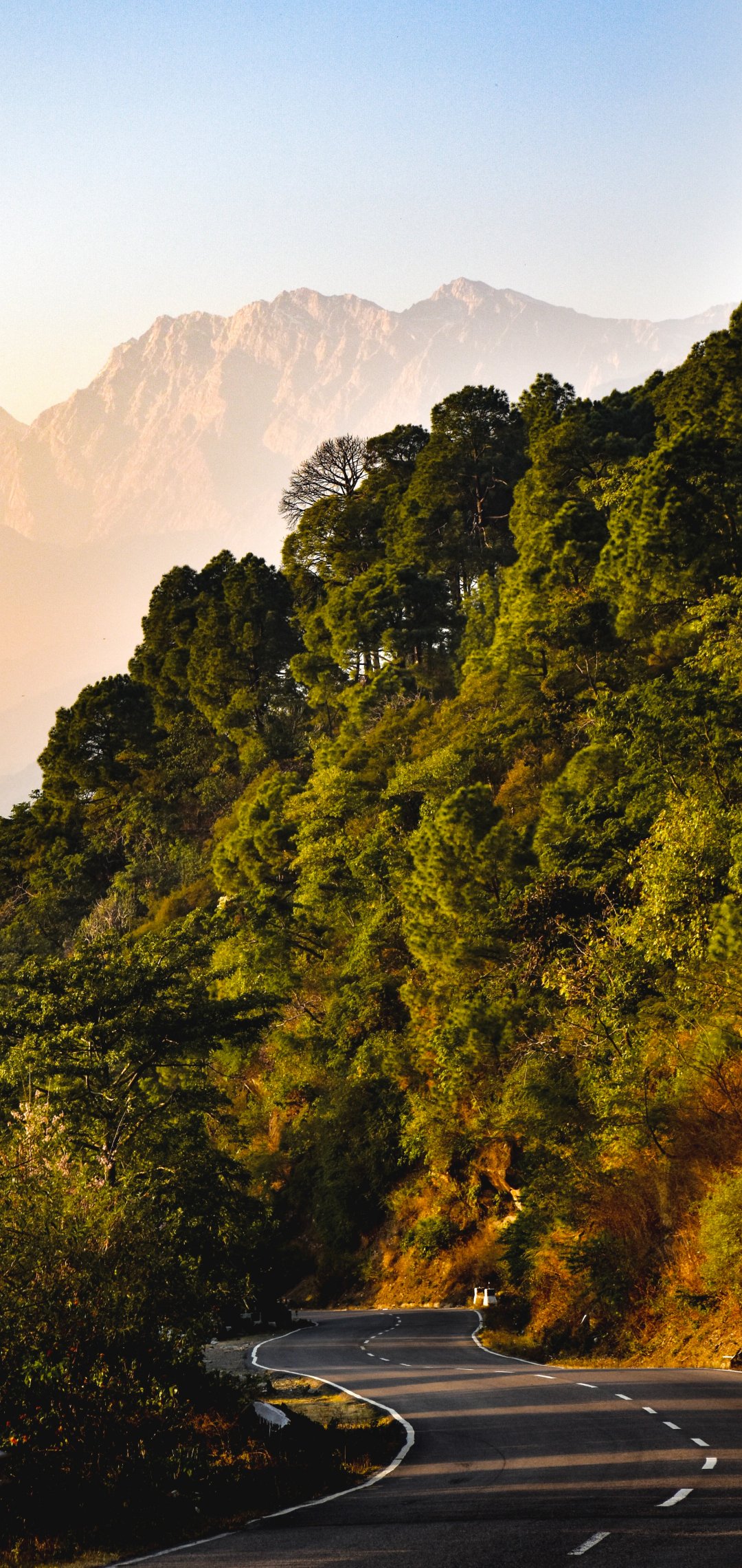 Обои: горы, лес, дорога - 1080x2280