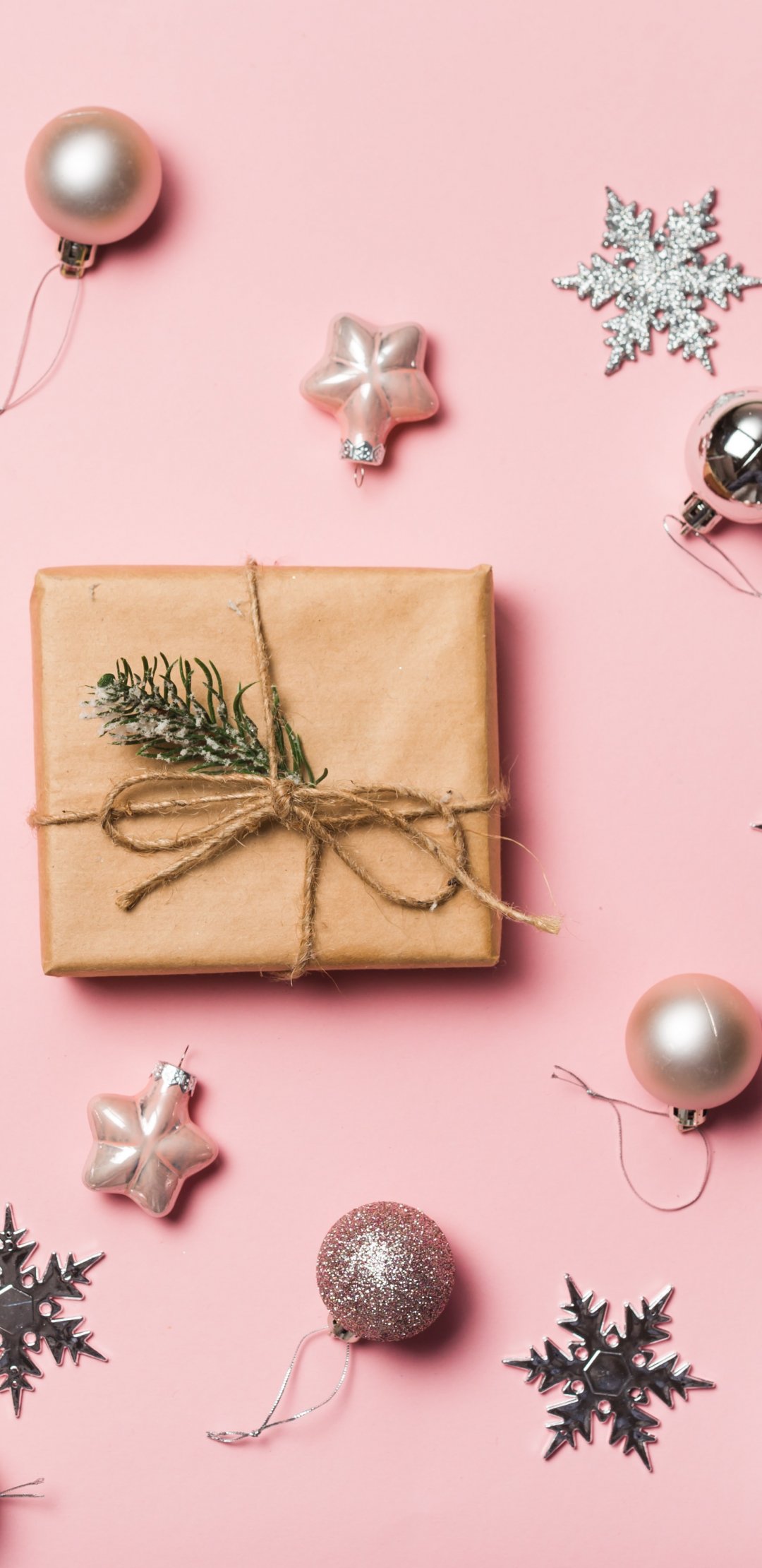 Обои: Подарки, Шарики, розовый фон - 1080x2220