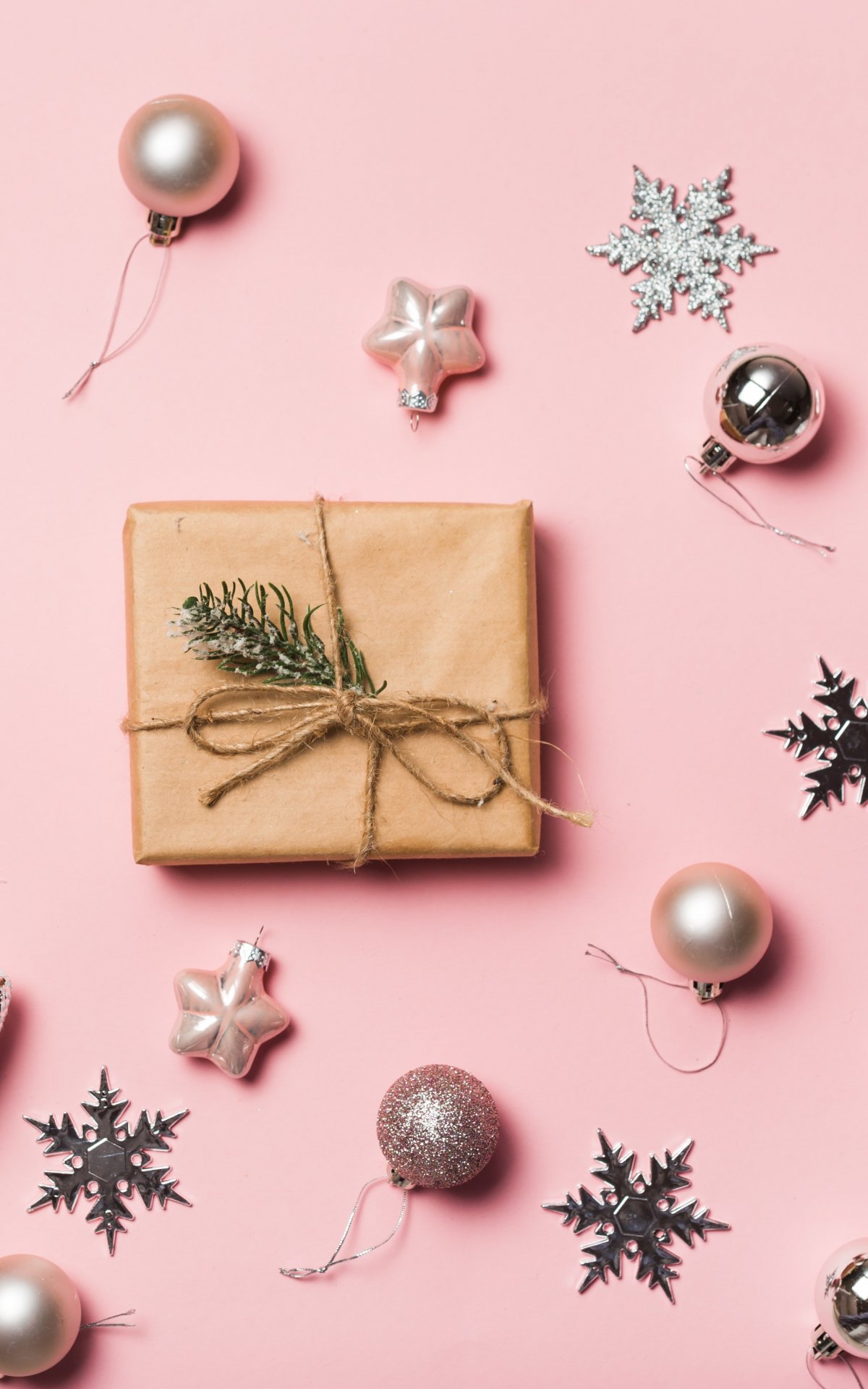 Обои: Подарки, Шарики, розовый фон - 1200x1920