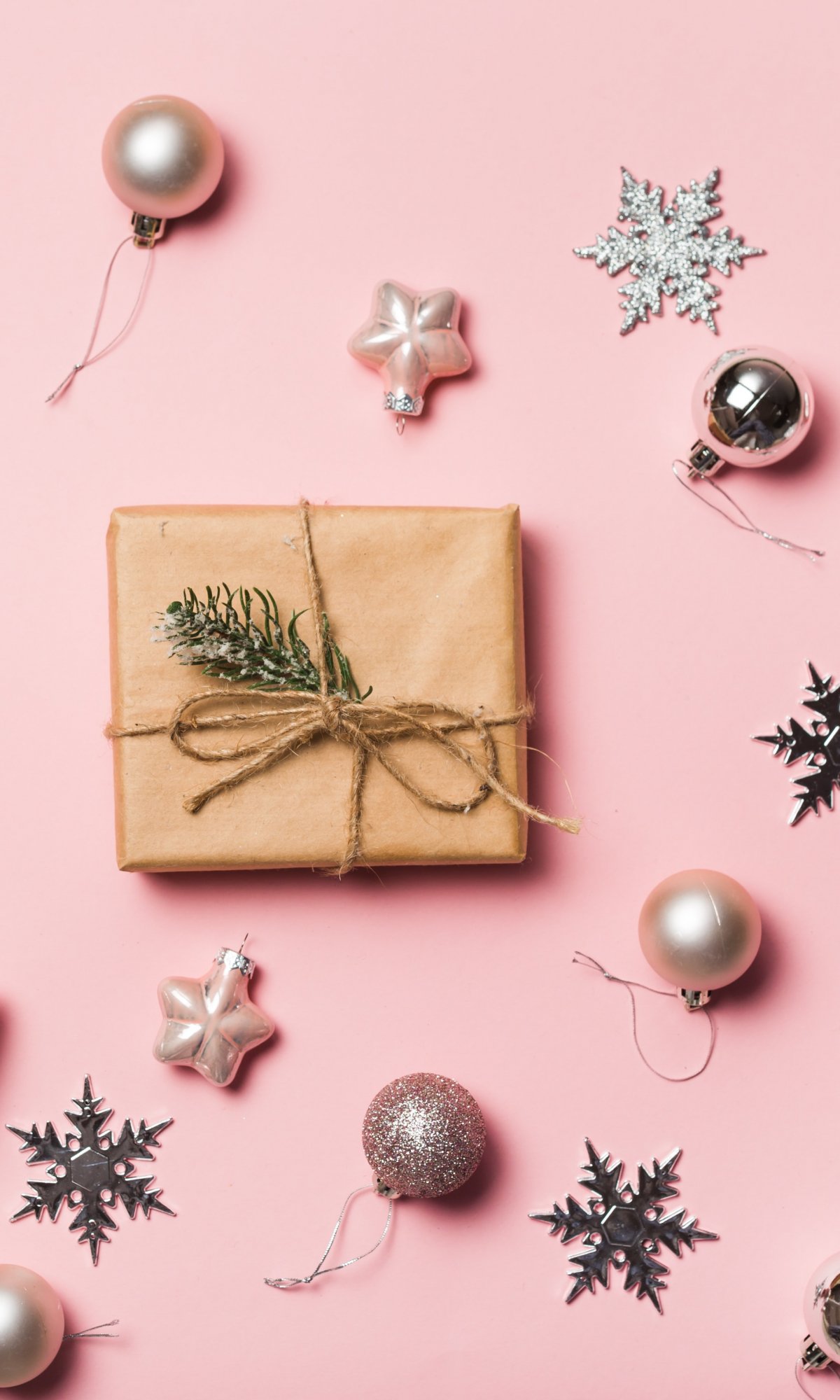 Обои: Подарки, Шарики, розовый фон - 1200x2000