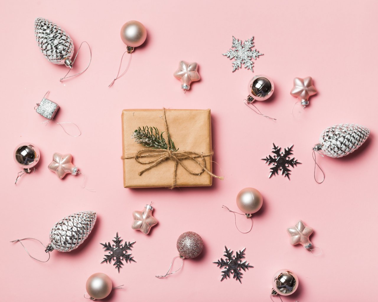 Обои: Подарки, Шарики, розовый фон - 1280x1024