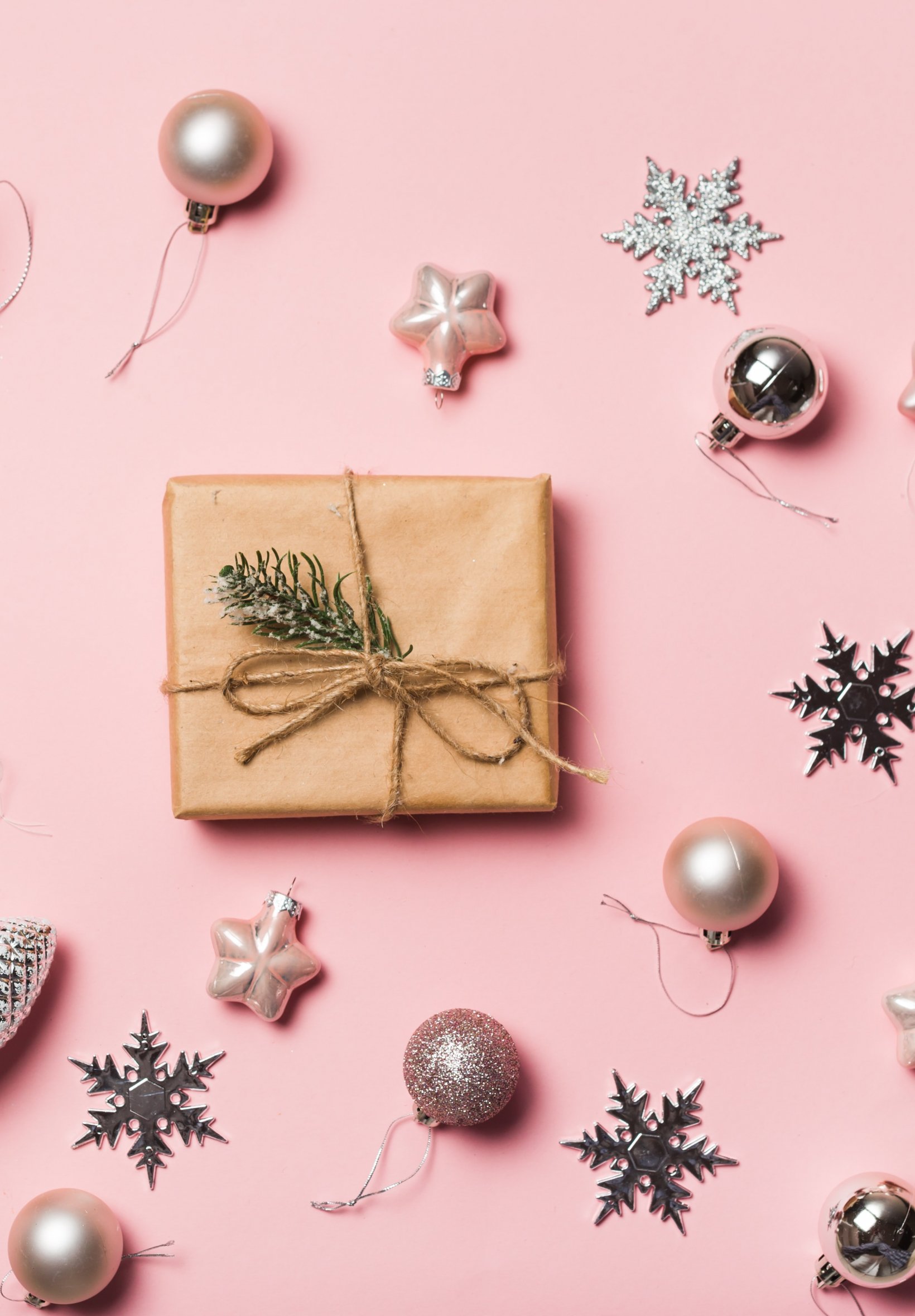 Обои: Подарки, Шарики, розовый фон - 1640x2360