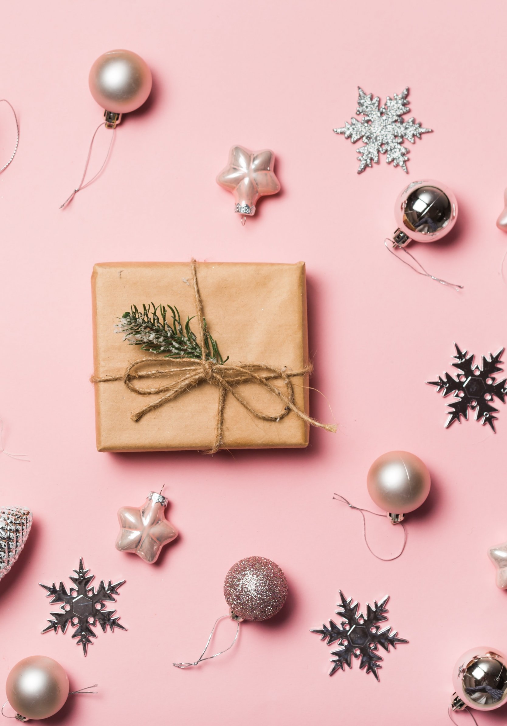 Обои: Подарки, Шарики, розовый фон - 1668x2388