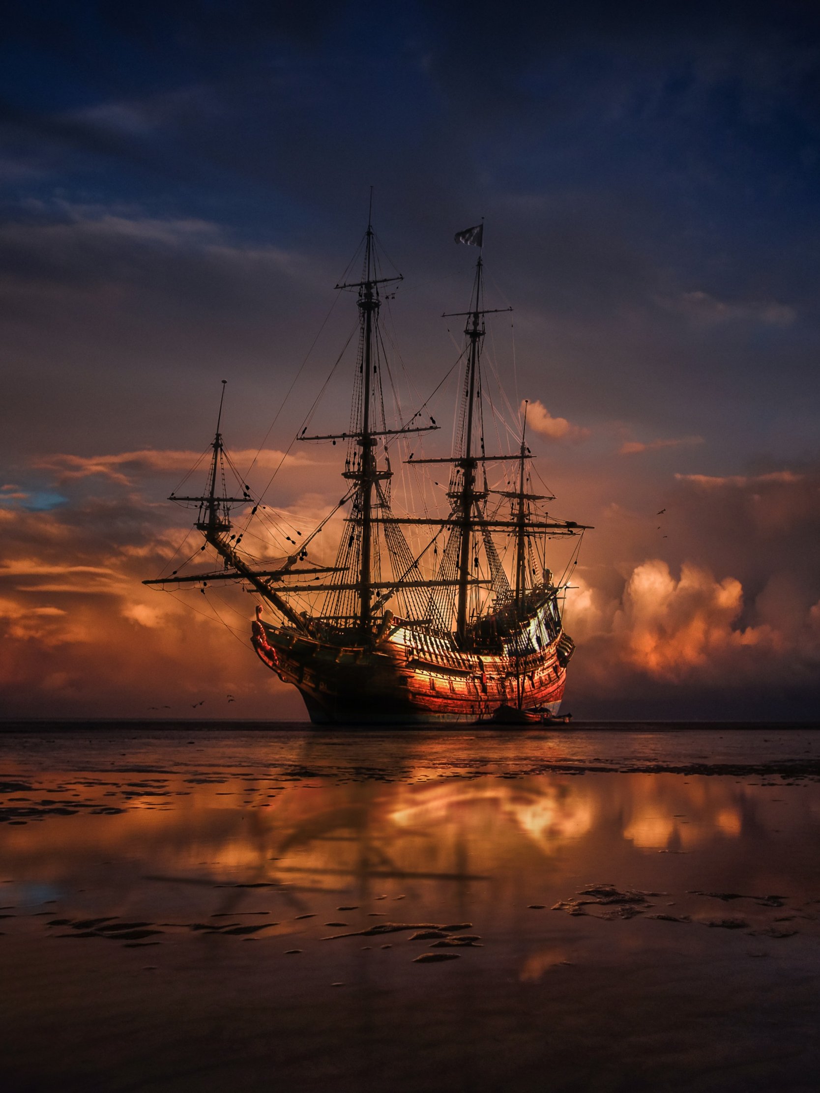 Обои: Корабль, море, закат - 1668x2224