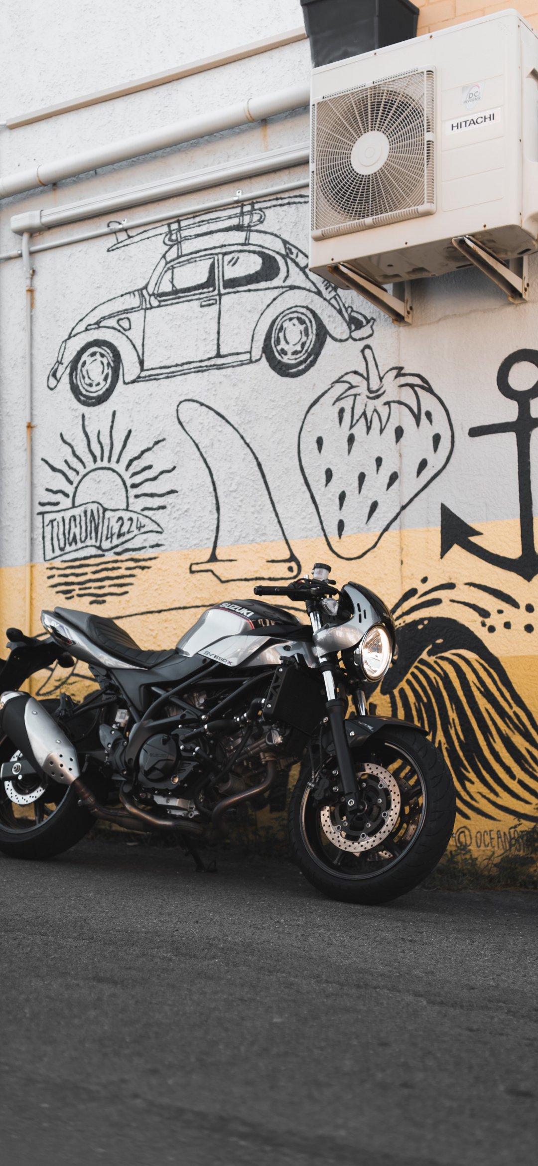 Обои: Мотоцикл, граффити, улицы - 1080x2340