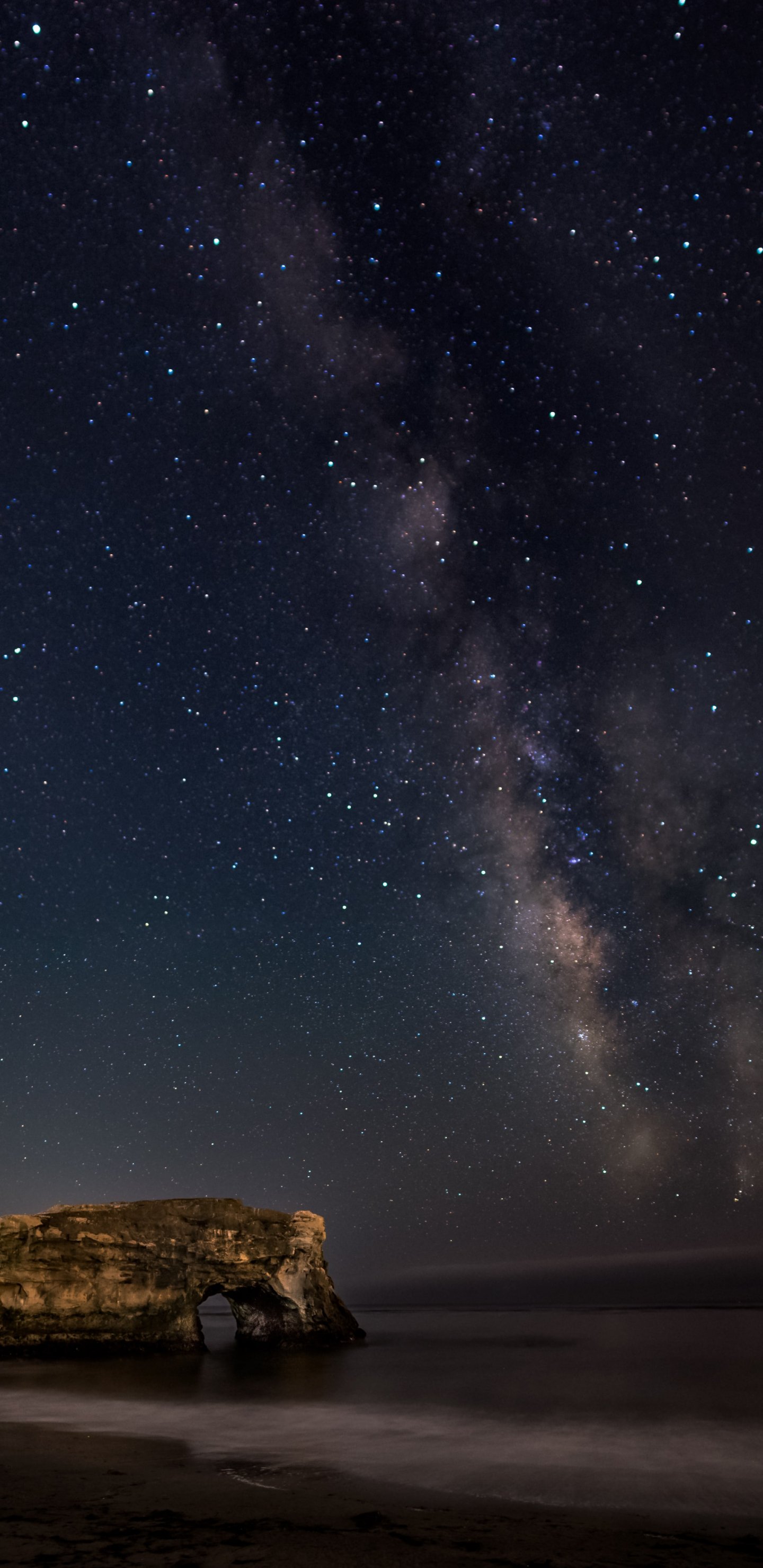 Обои: побережье, звездная ночь - 1440x2960