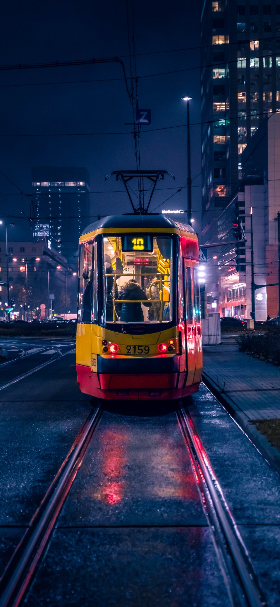 Обои: ночной город, трамвай - 1125x2436