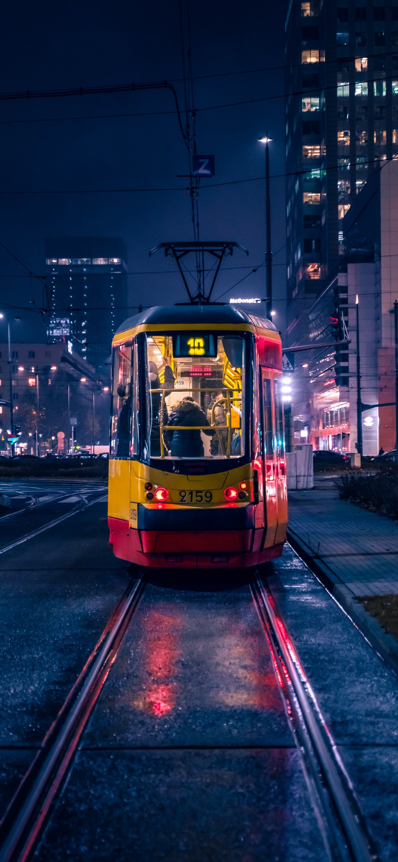 Обои: ночной город, трамвай - 1284x2778