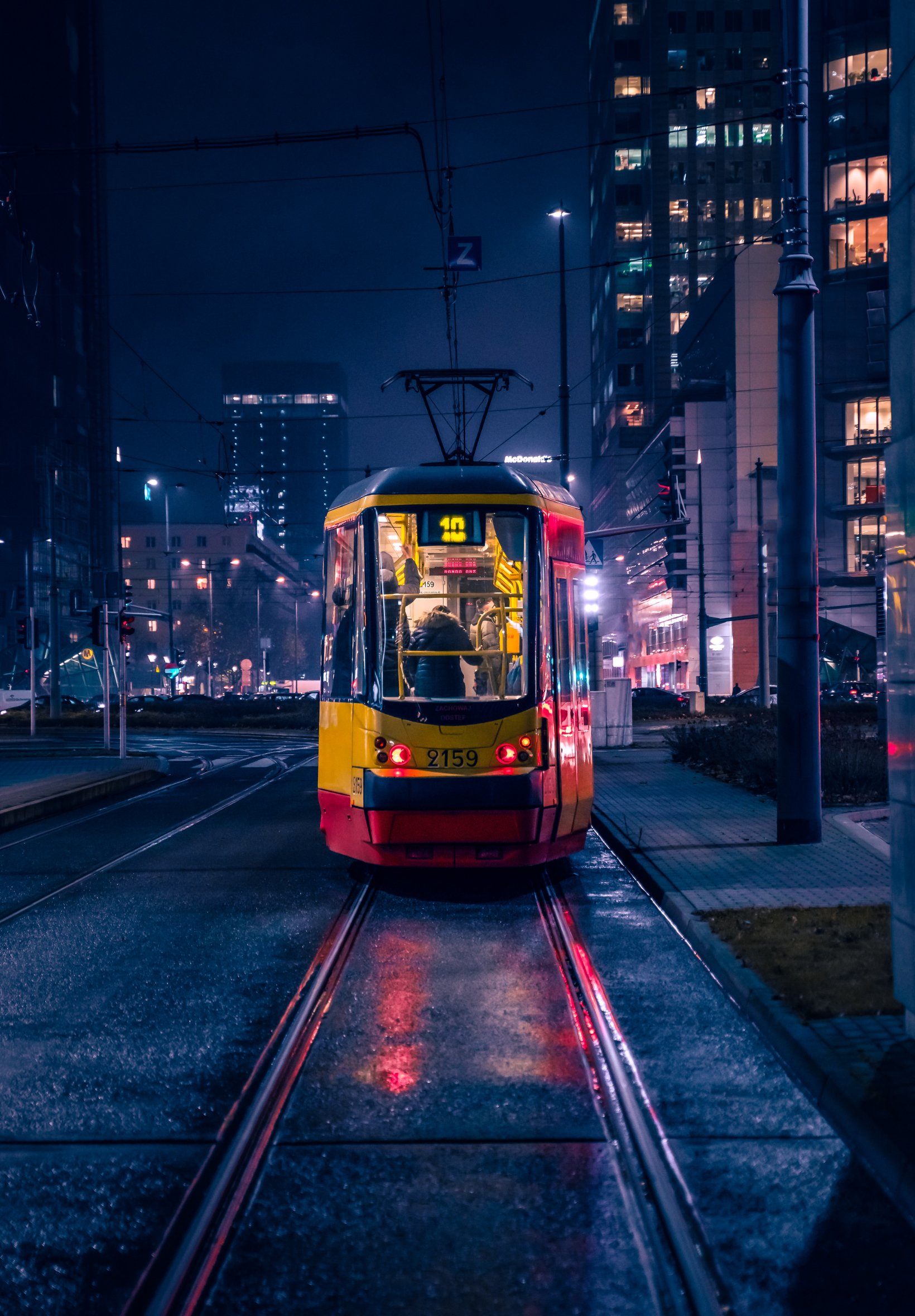 Обои: ночной город, трамвай - 1640x2360