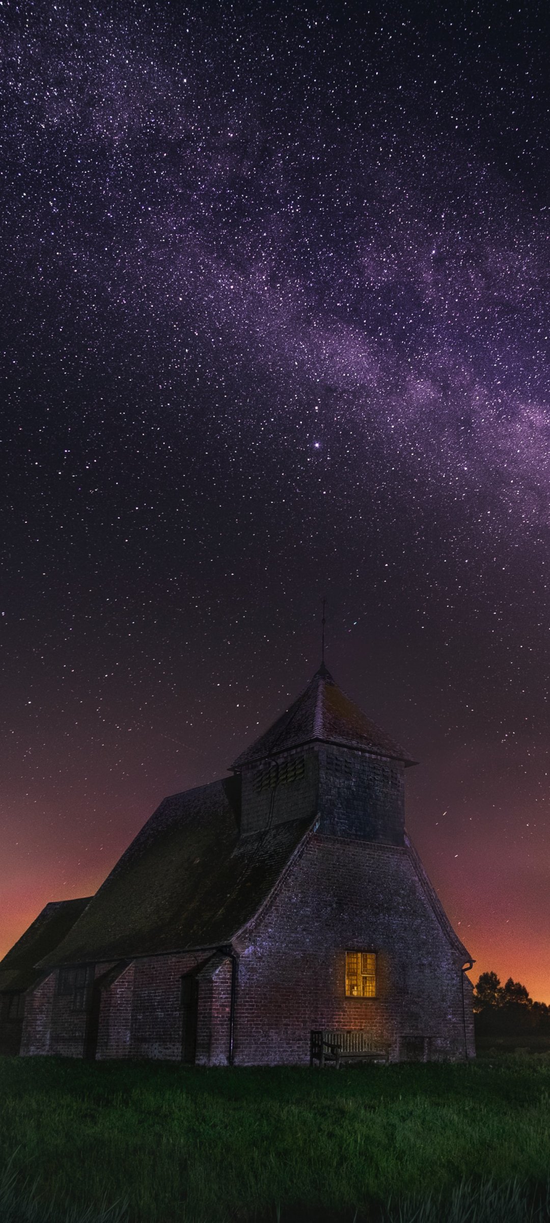 Обои: звездное небо, дом - 1080x2400