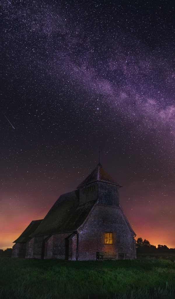 Обои: звездное небо, дом - 600x1024