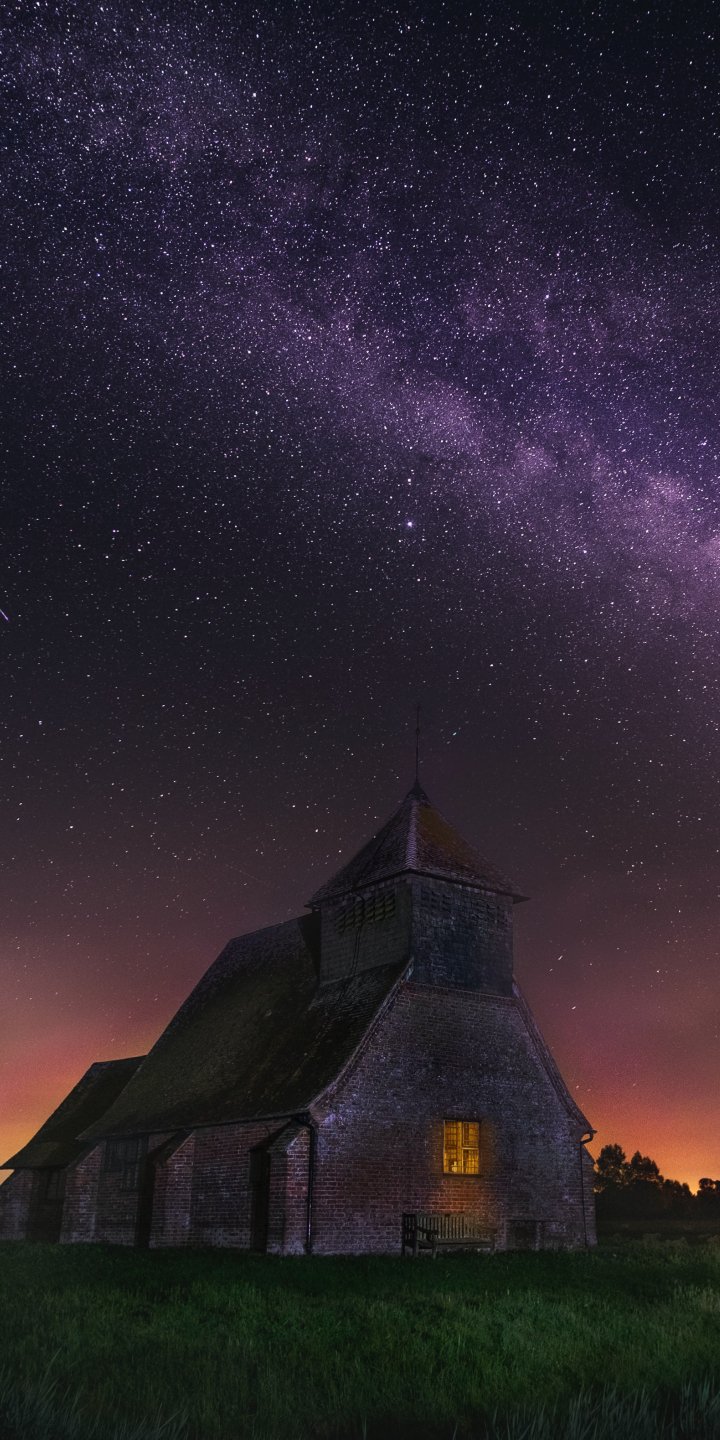 Обои: звездное небо, дом - 720x1440