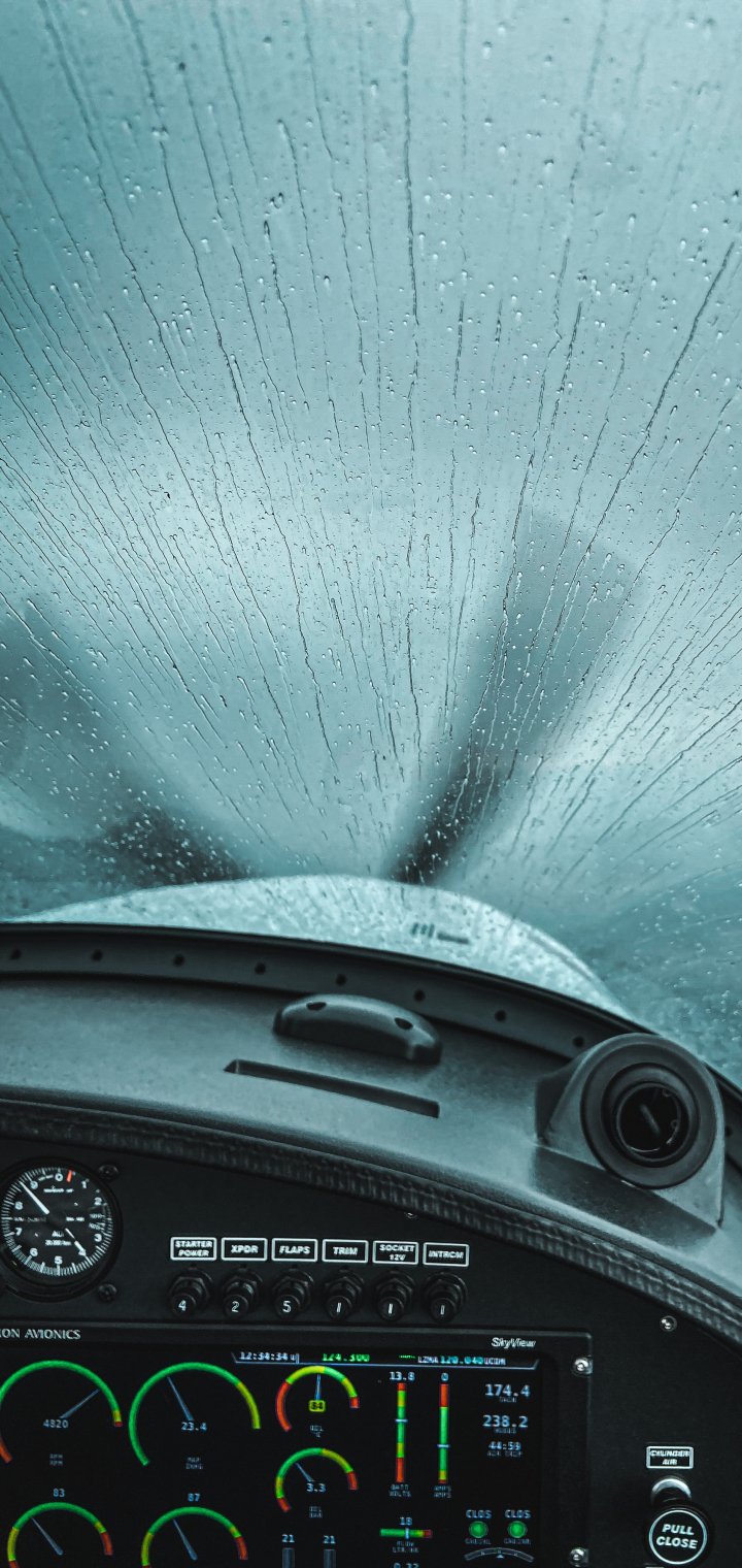 Обои: кабина самолета, полет, капли - 720x1520