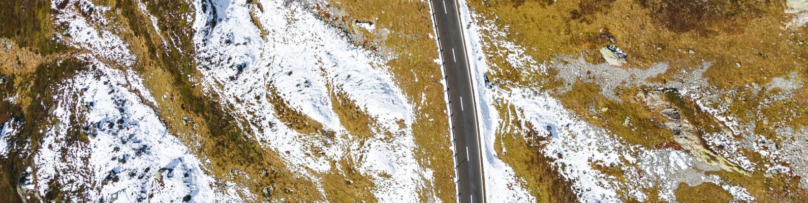 Обои: вид сверху, дорога, снег - 1590x400