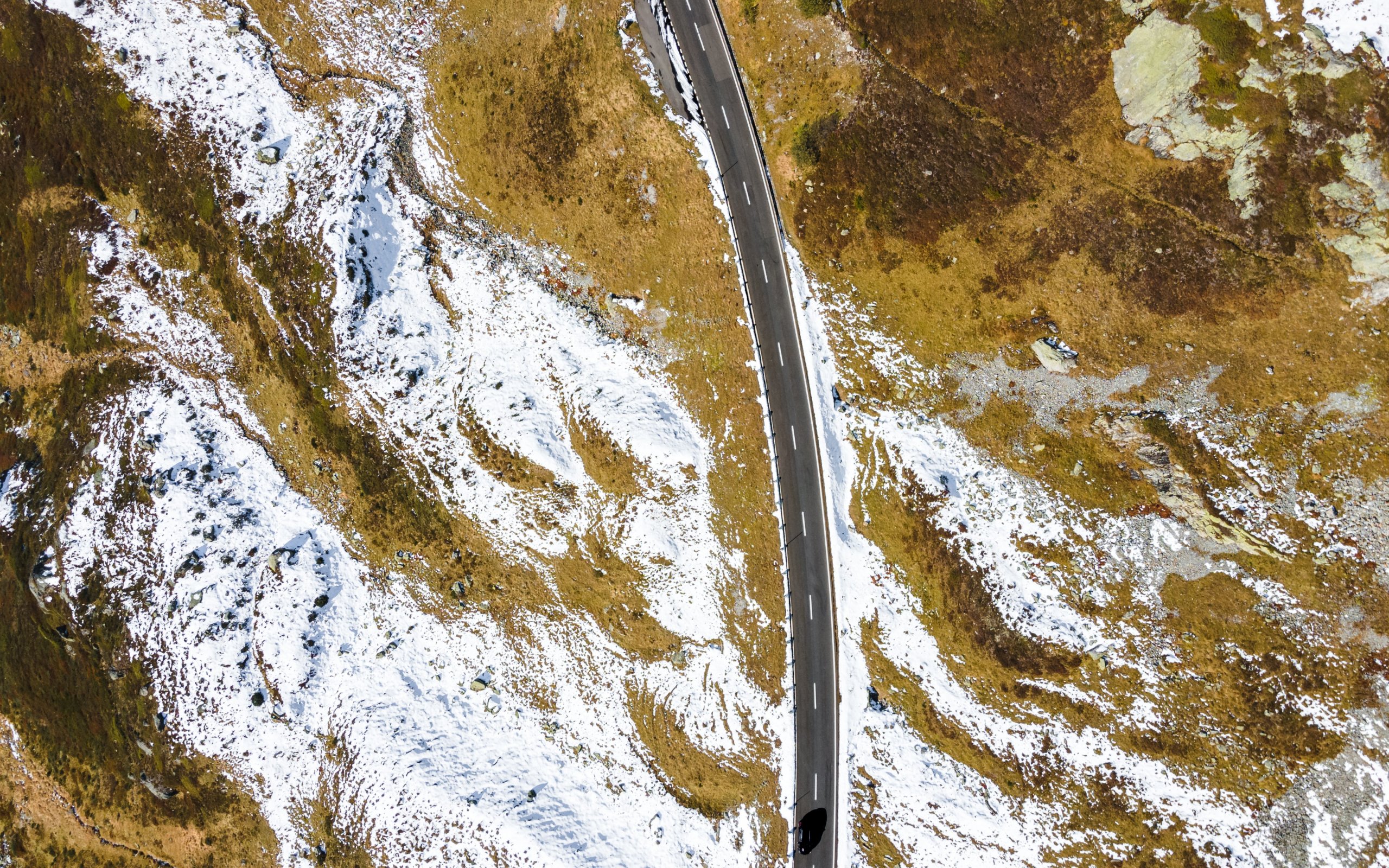 Обои: вид сверху, дорога, снег - 2560x1600