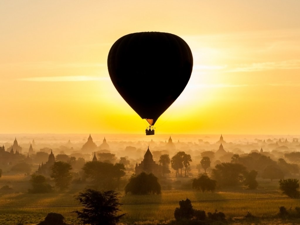 Обои: Баган, воздушный шар, высоко, полет - 1024x768