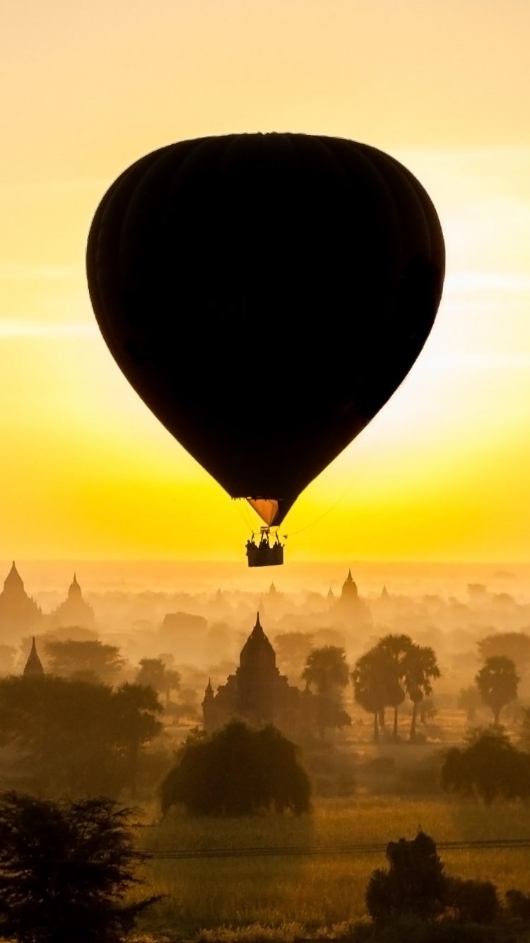 Обои: Баган, воздушный шар, высоко, полет - 750x1334