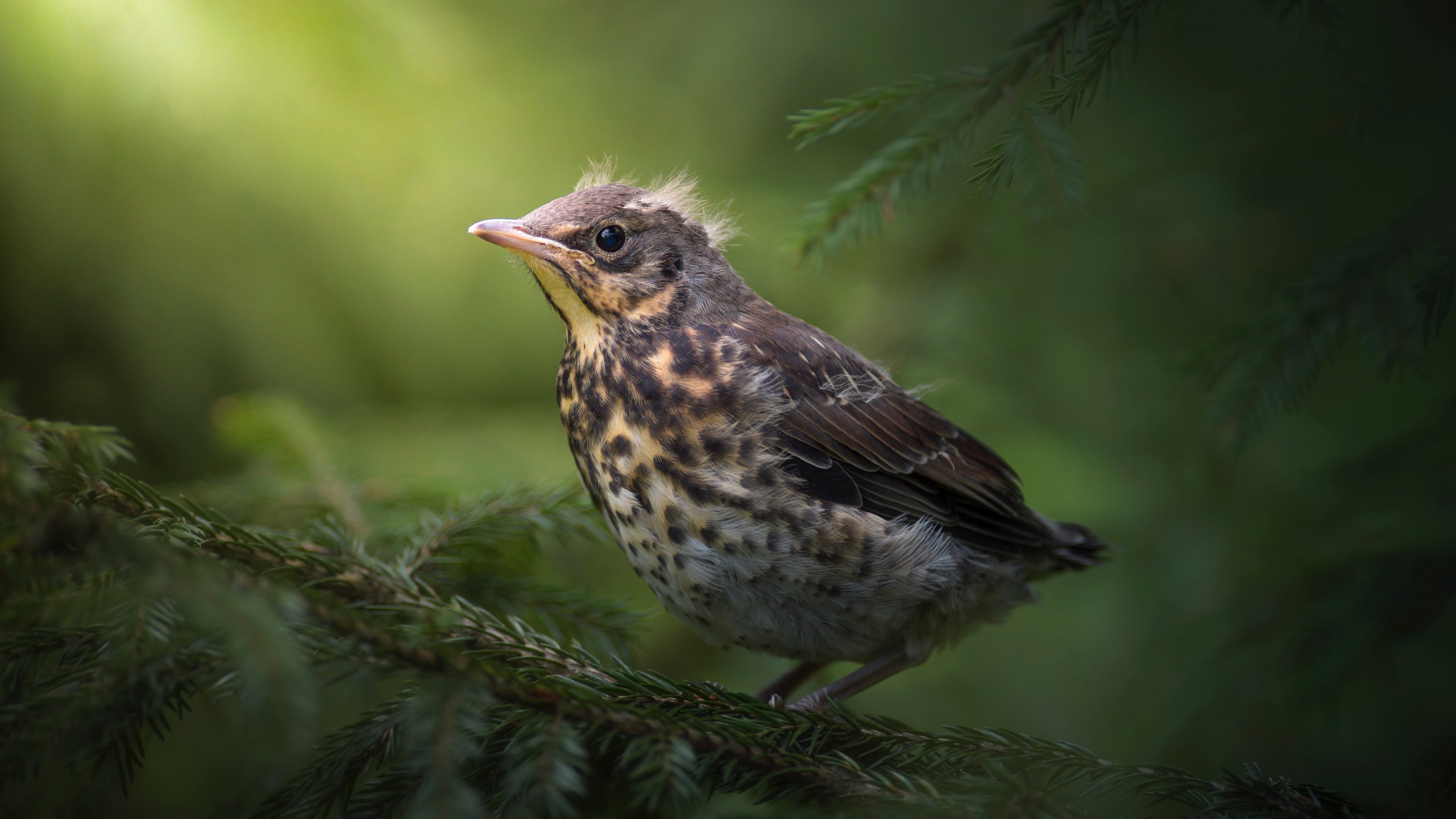 Обои: птенец, дрозд, рябинник, птица - 3840x2160