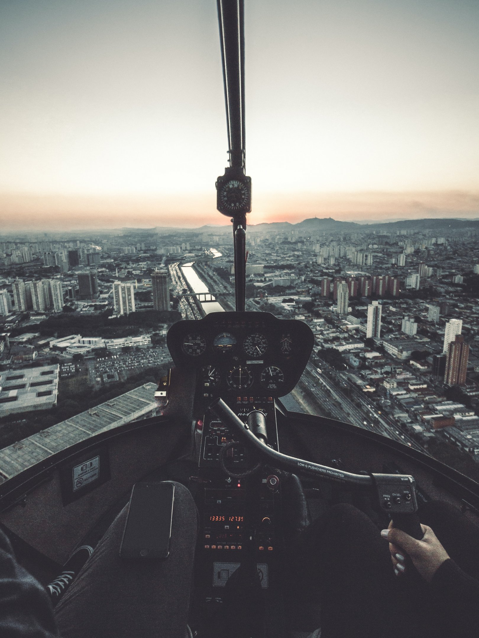 Обои: кабина вертолета, полет, панель приборов - 1620x2160