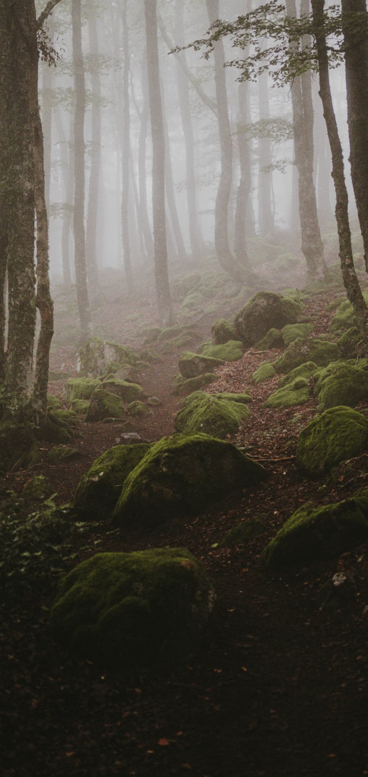 Обои: лес, туман - 720x1520