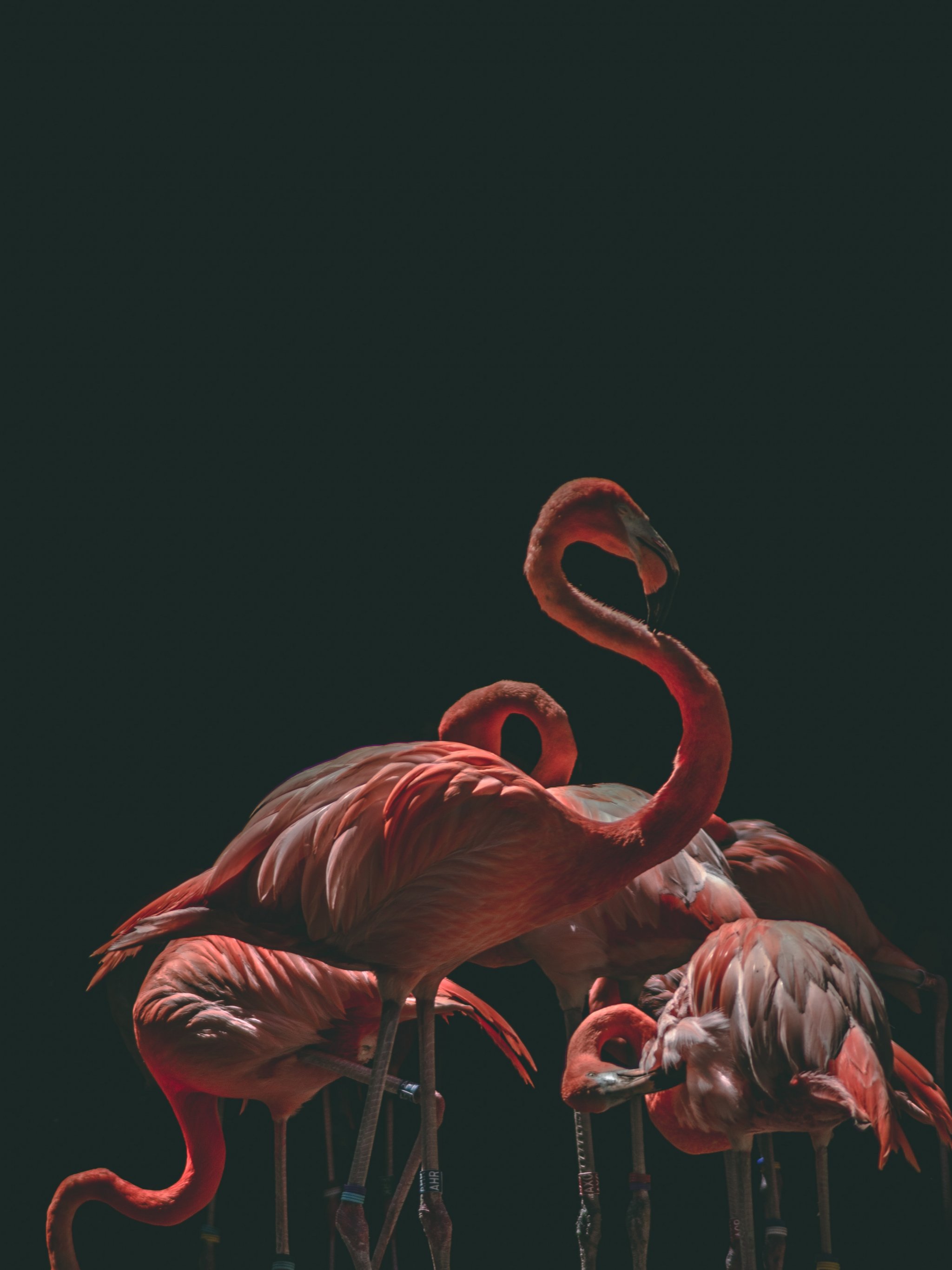 Обои: фламинго, птица, черный фон - 2048x2732