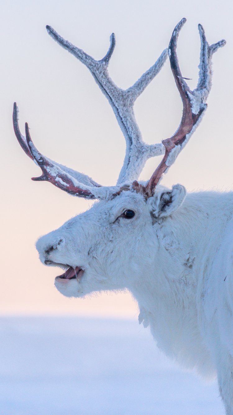 Обои: северный олень, белый - 750x1334