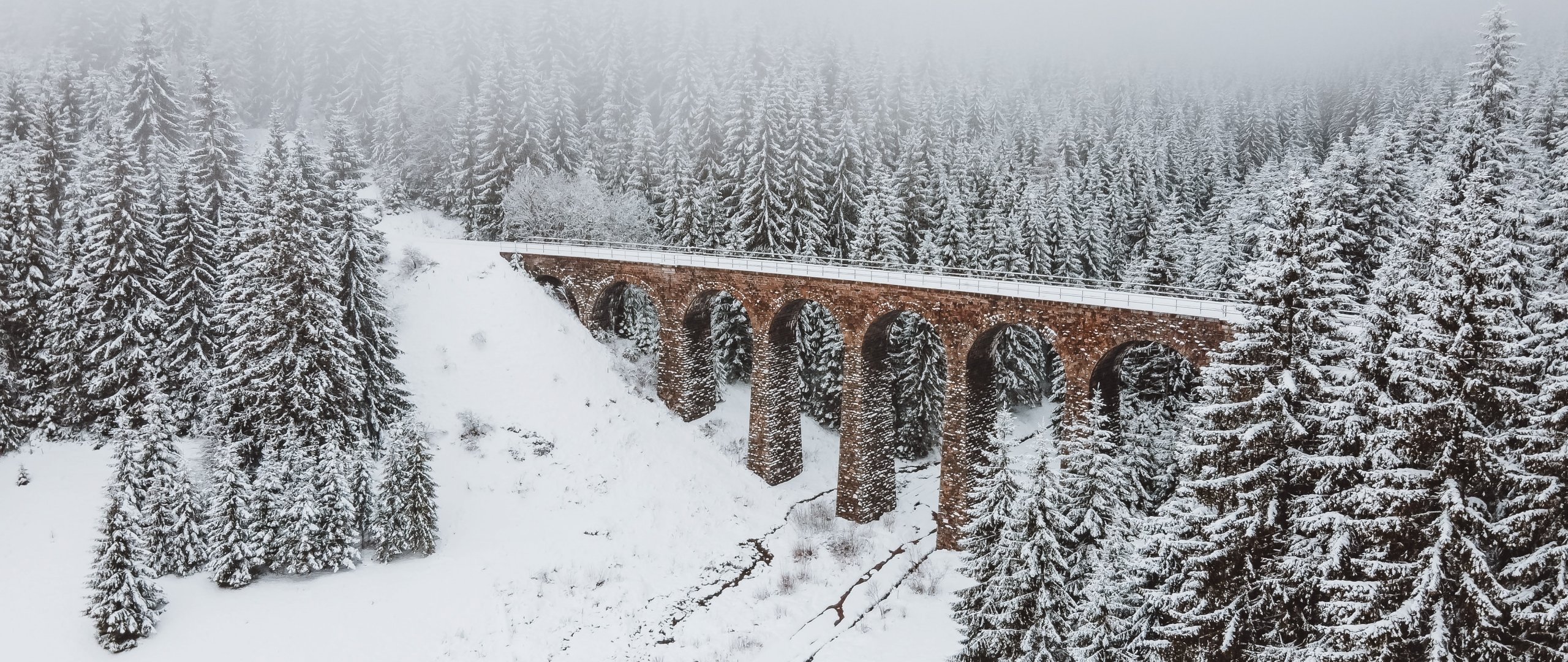 Обои: мост, зима, снег - 2560x1080