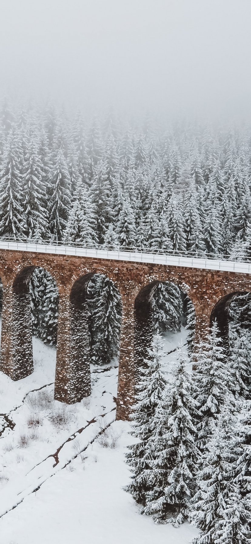 Обои: мост, зима, снег - 828x1792