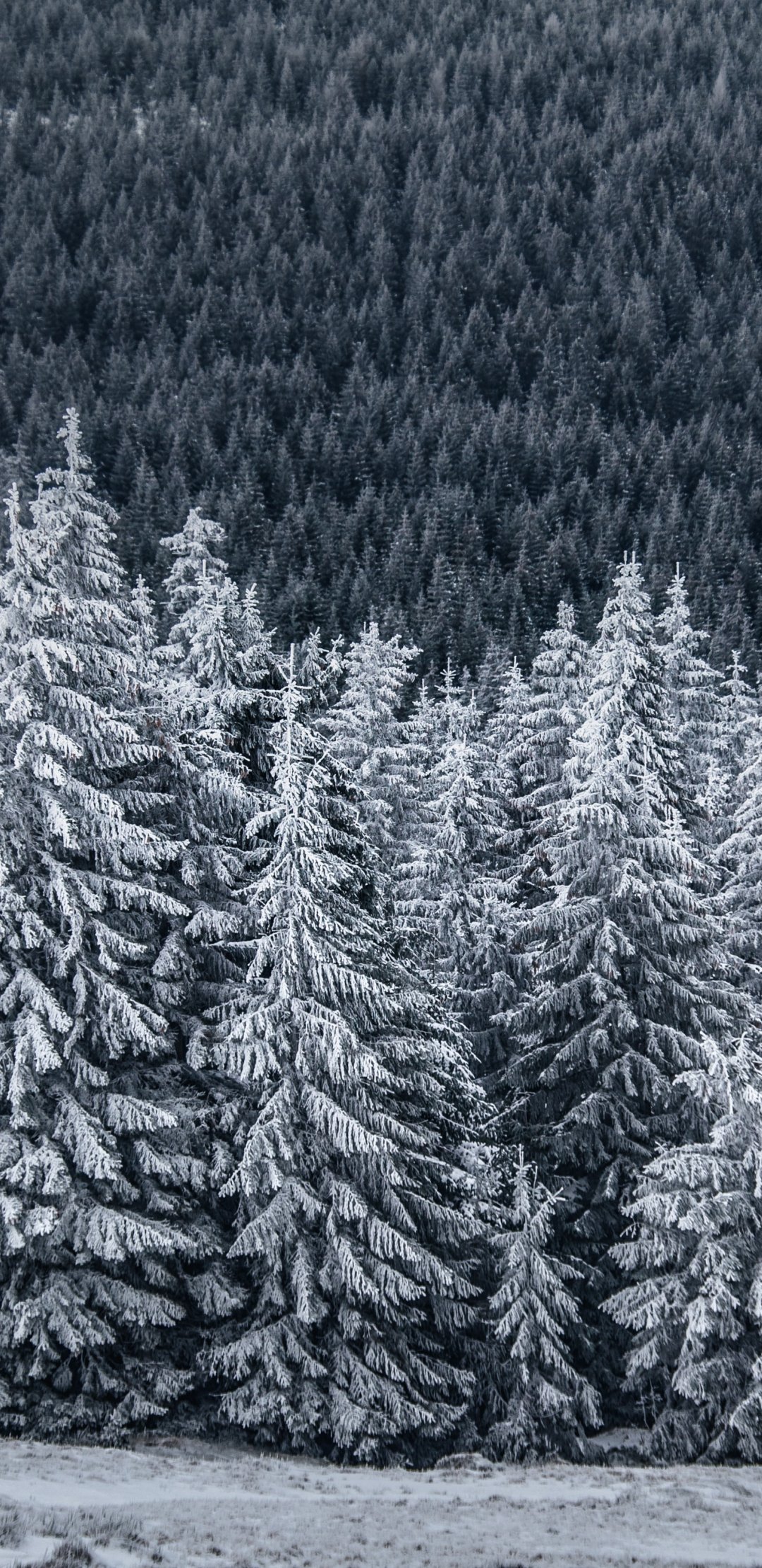 Обои: снежный лес, ель - 1080x2220