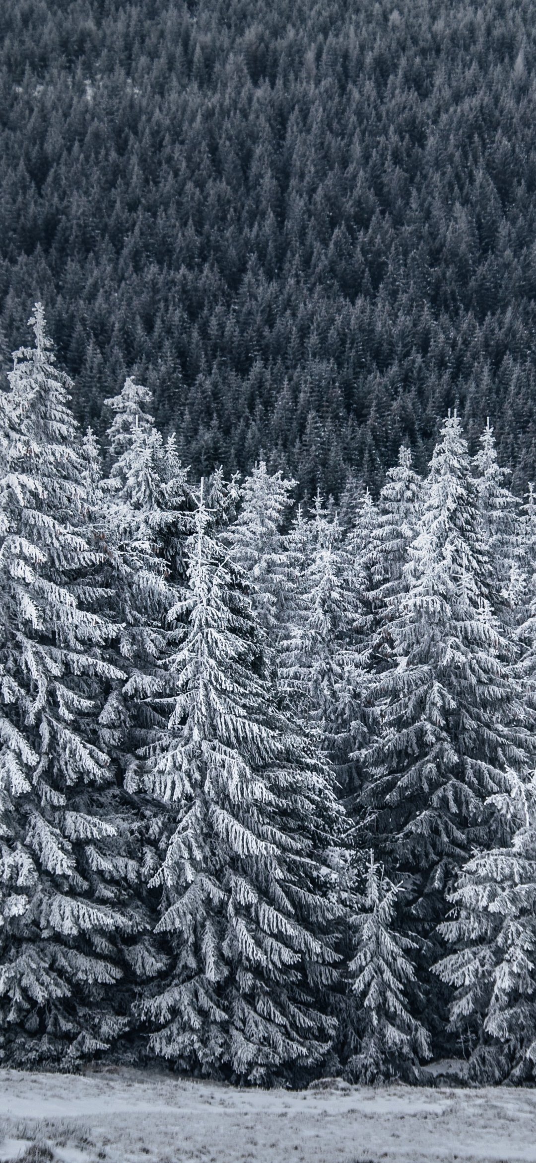 Обои: снежный лес, ель - 1080x2340