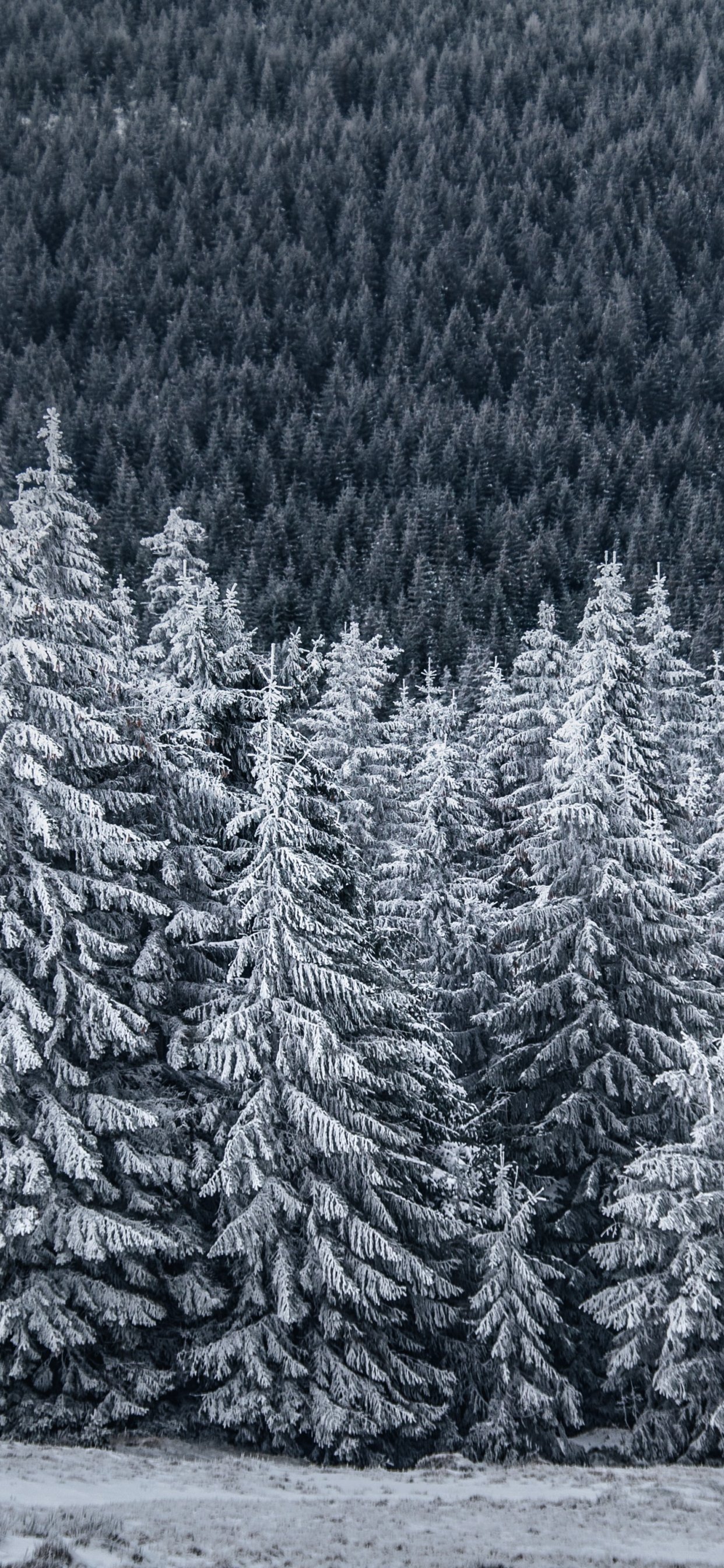 Обои: снежный лес, ель - 1242x2688