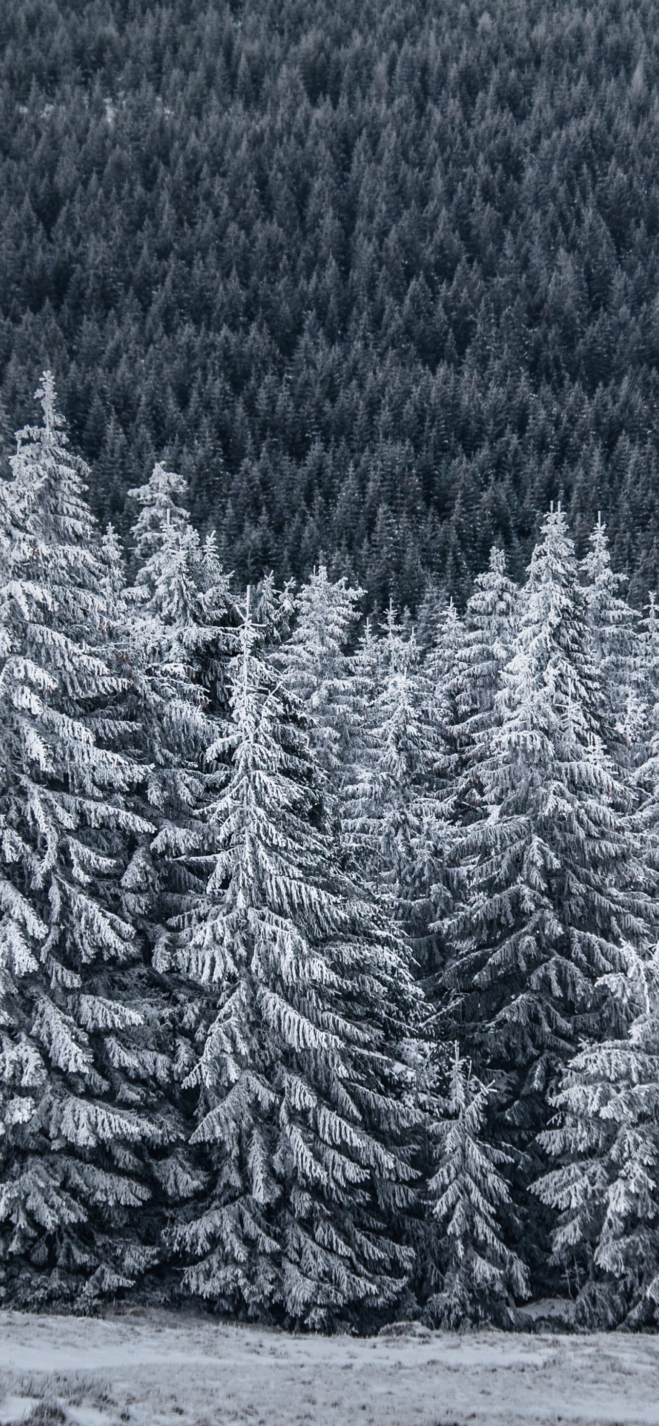 Обои: снежный лес, ель - 1284x2778