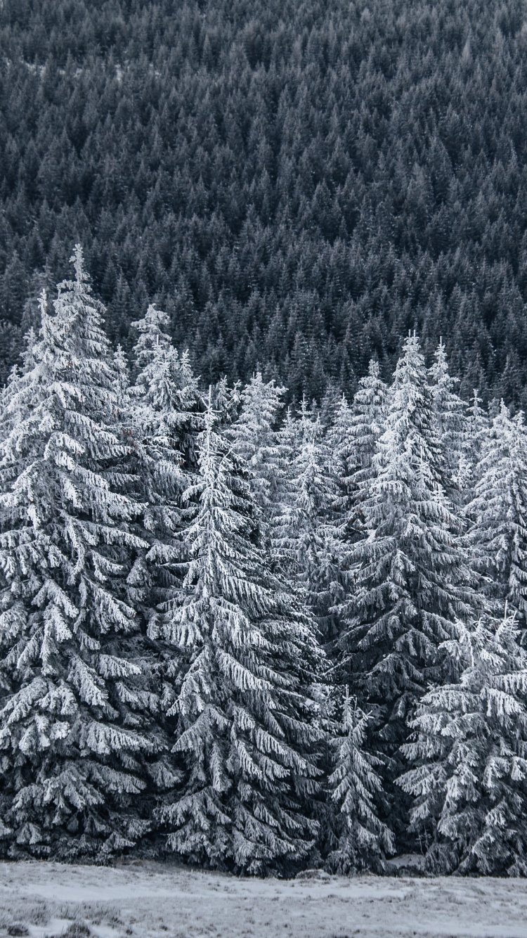 Обои: снежный лес, ель - 750x1334