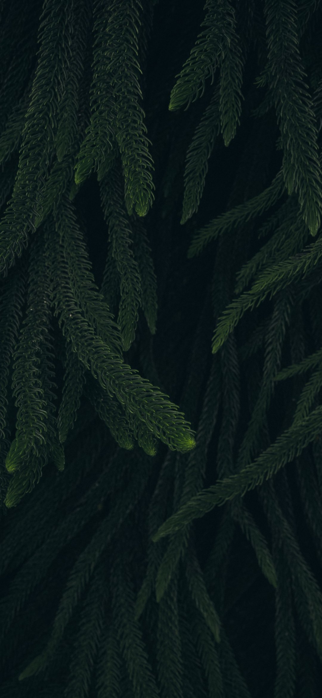 Обои: хвоя, зеленый, черный фон - 1080x2340