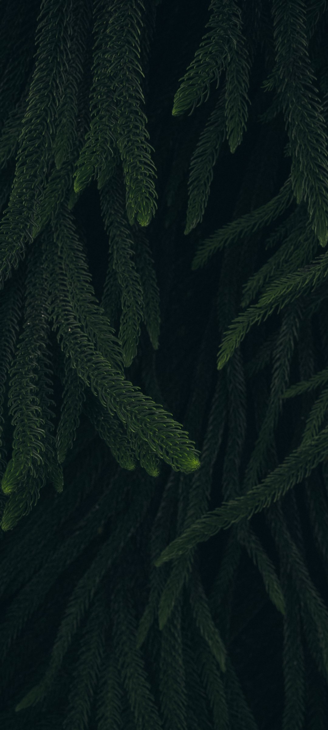 Обои: хвоя, зеленый, черный фон - 1080x2400