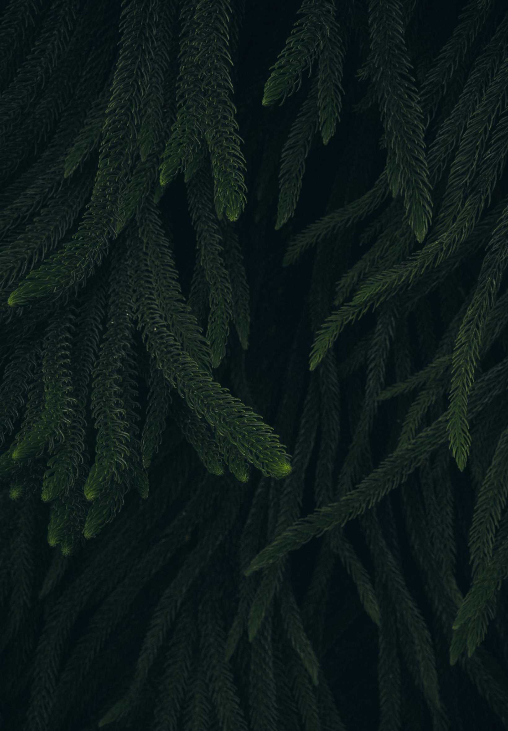 Обои: хвоя, зеленый, черный фон - 1640x2360