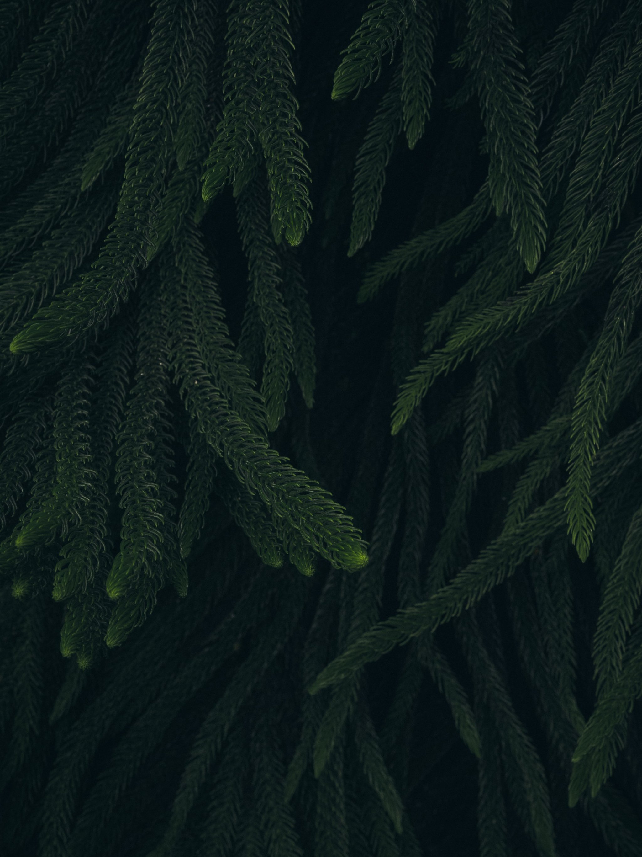 Обои: хвоя, зеленый, черный фон - 2048x2732